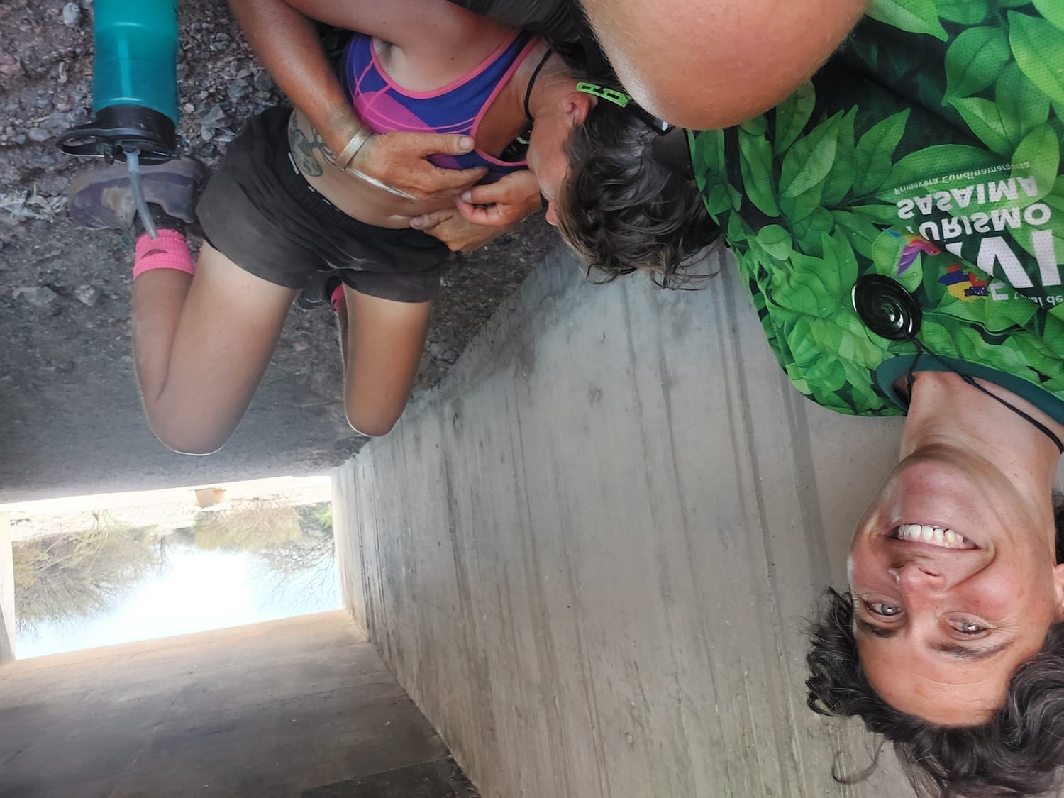 The next break was another shrine — not a concrete number this time, just some poles with a tarp. That’s where I cracked. I told Maree we were fighting a losing battle. If I kept going, she’d have to commit me. Plus, the 18km to Aimogasta was going to take four hours at this rate. We’d be wrecked.