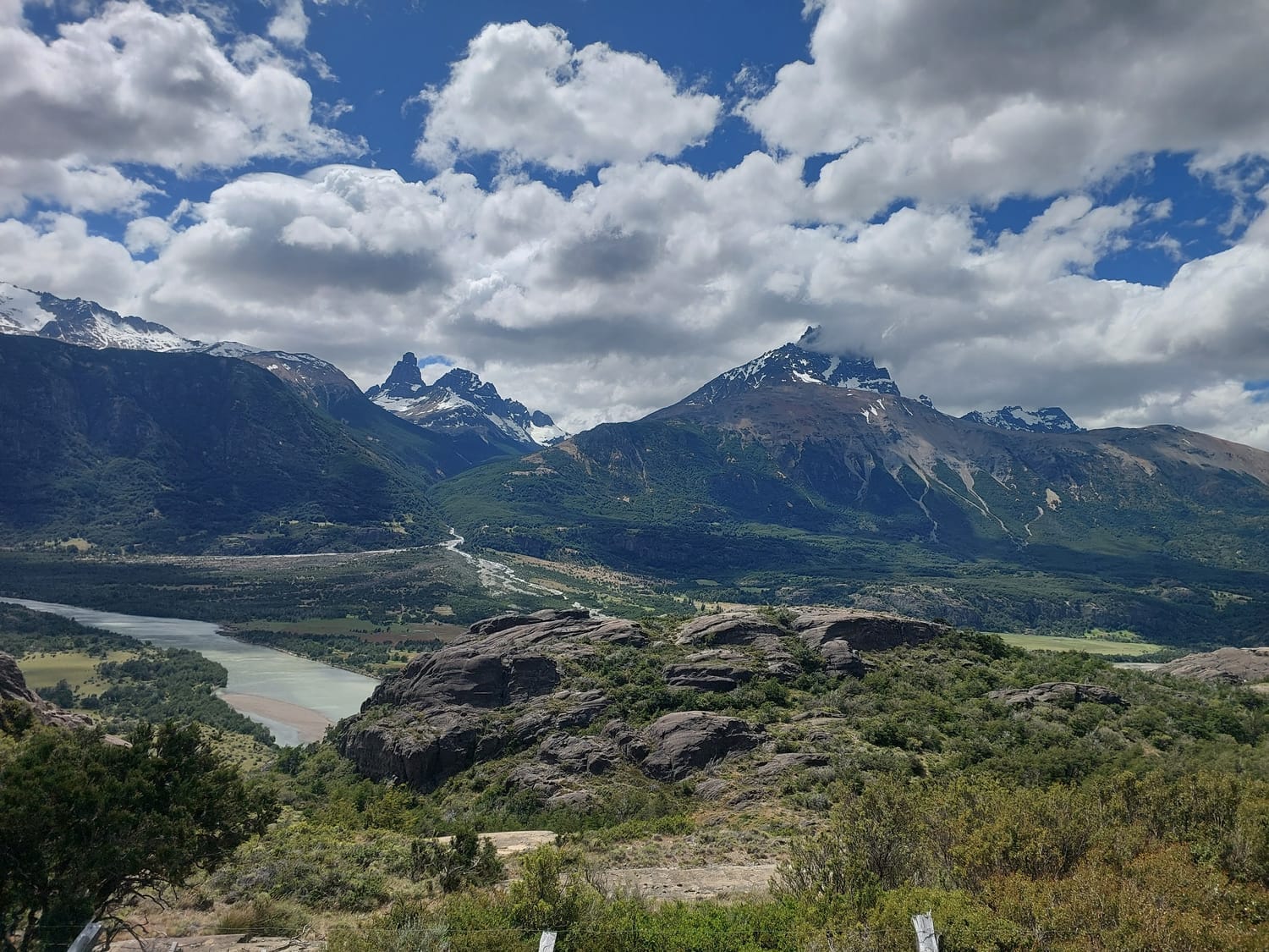 Patagonia serving up its usual magic, hanging valleys, waterfalls, lush bush and a sprinkling of farmland.