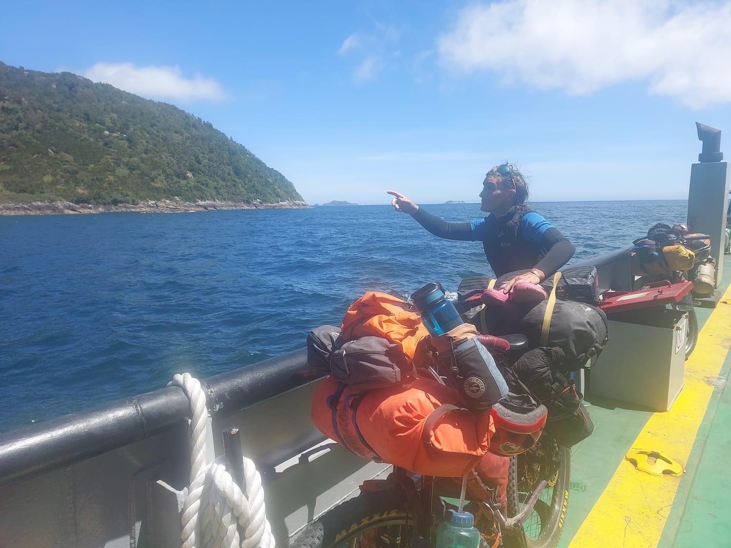 It was a two-stage ferry mission. Ferry 1: four hours. Then a mad dash over a short mountain pass. They let cyclists off first, so for a glorious moment we led the convoy like champions before the cars overtook us one by one.