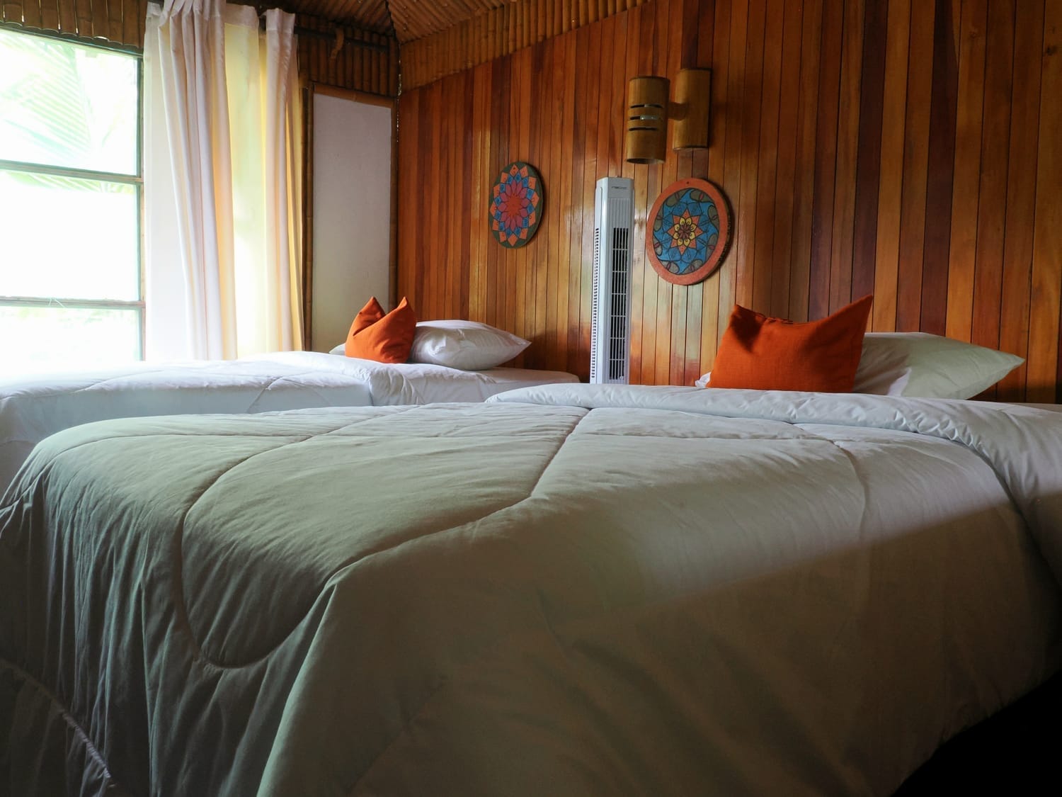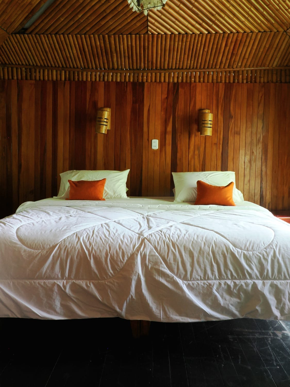 We arrived at the lodge and were greeted by Recio—an absolute gem of a woman, warm smile, soft voice, and a vibe that made us instantly feel at home. Her young daughter peeked out from behind her legs, curious and cheeky. They showed us around their jungle haven—eco chalets tucked amongst the trees, flowers blooming everywhere, and birds calling from the canopy like something straight off a David Attenborough doco.