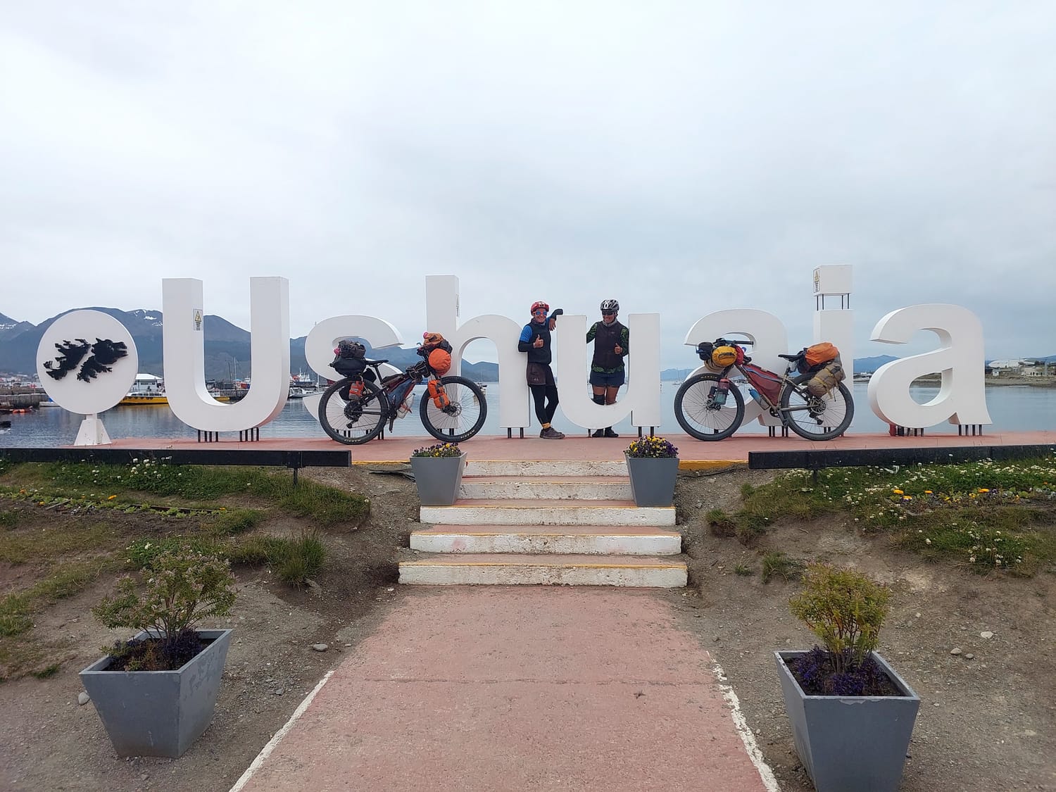When I hit the Welcome to Ushuaia road sign, I stopped and waited for Maree. We’d already decided the true finish line would be the big Ushuaia tourist letter sign down on the waterfront. Apparently that’s the official “End of the Earth.” Who are we to argue.