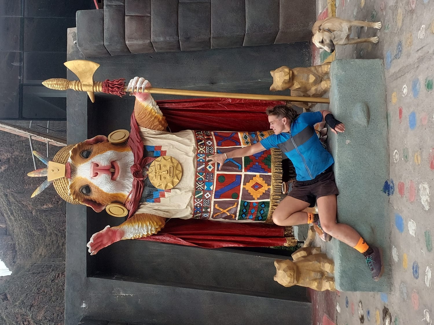 amay is guinea pig central, and the main road is lined with giant Guy statues — Guy the Chef, Guy the Local, Guy the King, Guy the Artist, and Guy the Butler.