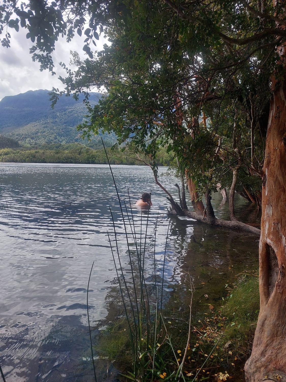 Tonight we’re camped by a lake at a picnic spot. Fire going. Looking across steep green bush-clad slopes. My heart warm—and not just from the flames.