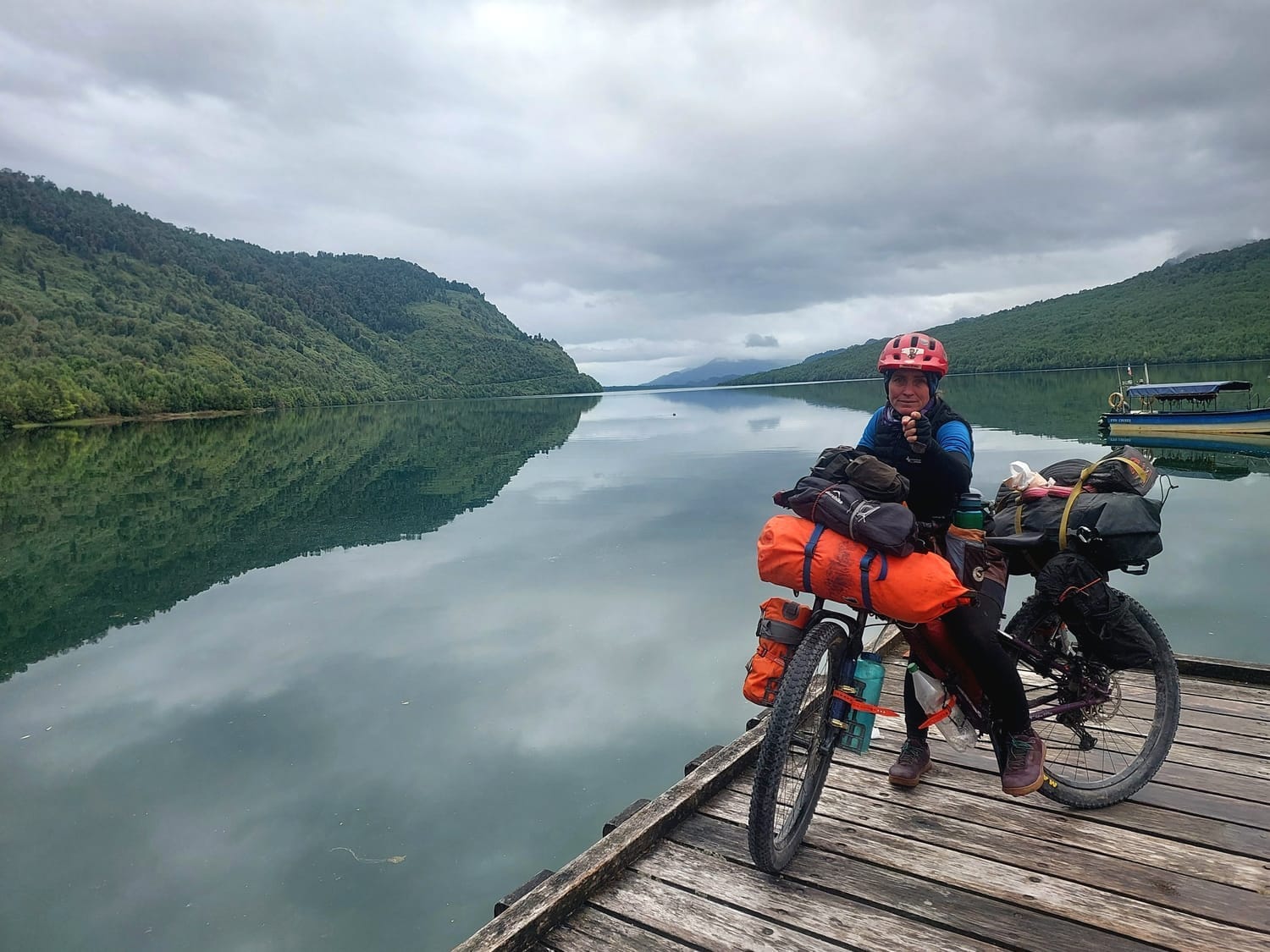 By the time we finished, the rain had eased, so we hit the road again toward Puyuhuapi, only 40km away but with enough undulations to remind us who’s boss.