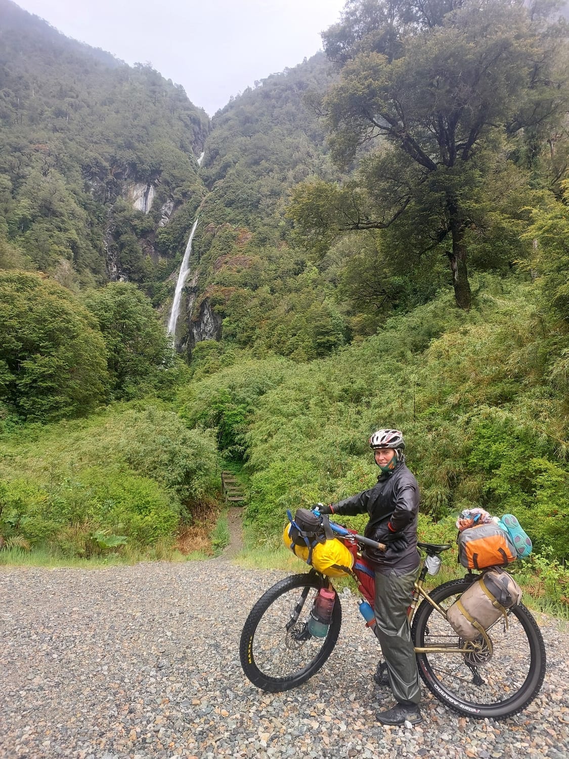 The descent was slick but stunning. Waterfalls spilled out of places that definitely don’t have waterfalls when it’s dry. Bush gleamed in the rain. Everything felt alive.