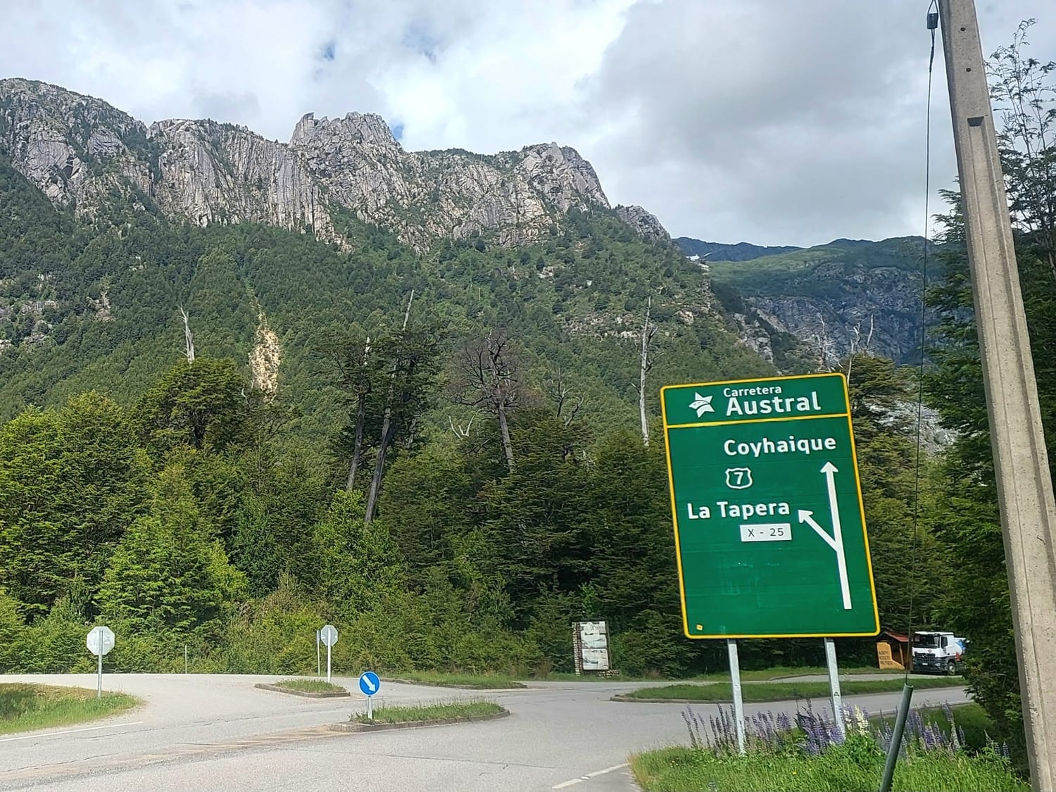 More dragon-tooth peaks today—this time looking like the dragon cracked open beer bottles with its molars. The Carretera Austral is endless undulations. Yesterday was the steep stuff. Today was gentler rolling hills—downs that cruise you halfway up the next up.