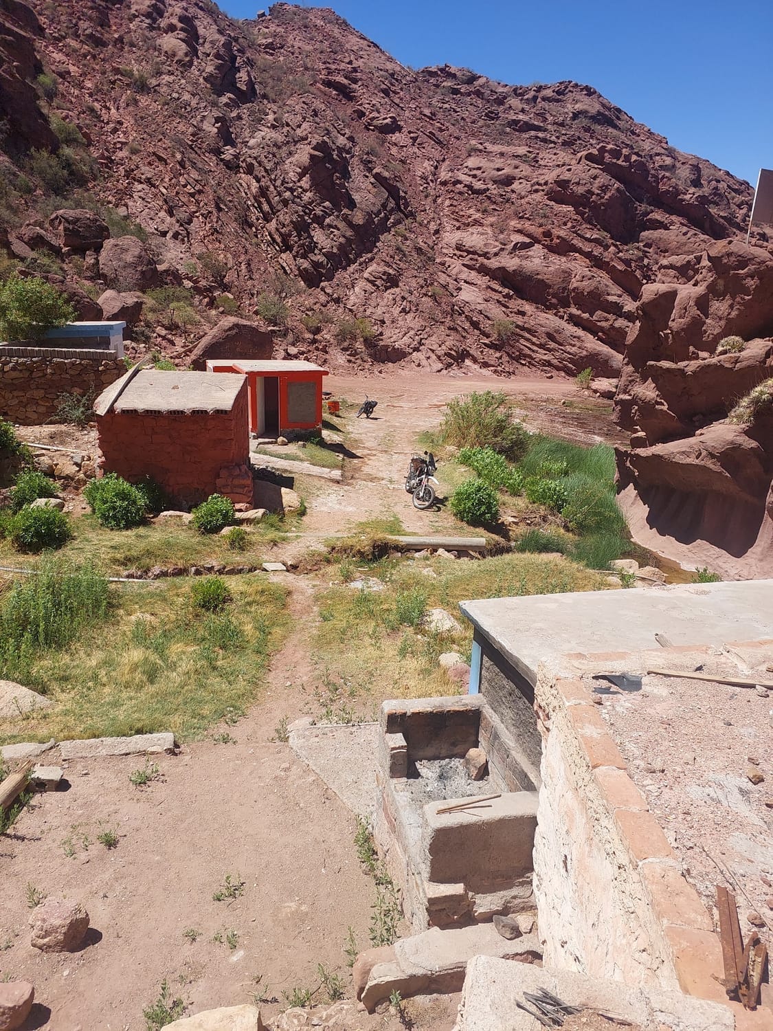 We cycled through small clusters of houses scattered across this rocky desert. It looked like a massive quarry, minus the diggers and trucks. The ground beside the road was silty, gravely and loose. We crossed a ridiculous number of concrete fords through dry riverbeds, each one a reminder of how much water must rip through here when it rains. I’ve said it before, but in a good downpour this land must move mountains. It’s so fragile and raw, like the whole place is just hanging on by a thread.